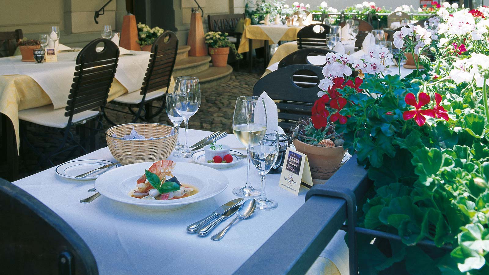 Ob Mittagessen, ein abendliches Menü, im Gastraum im typischen Markgräfler Stil oder auf der Restaurantterrasse - Lassen Sie sich rundum verwöhnen.
